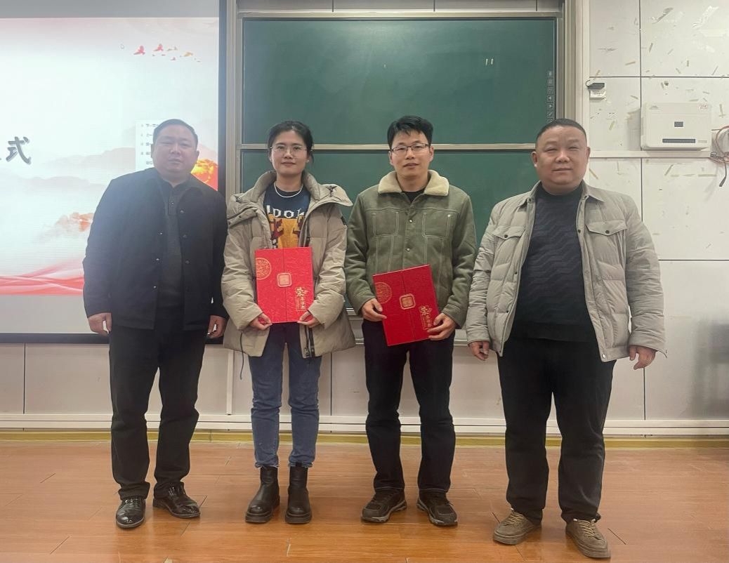 (党总支副书记石海、副院长彭广威为严中俊、徐振峰颁发荣誉证书)