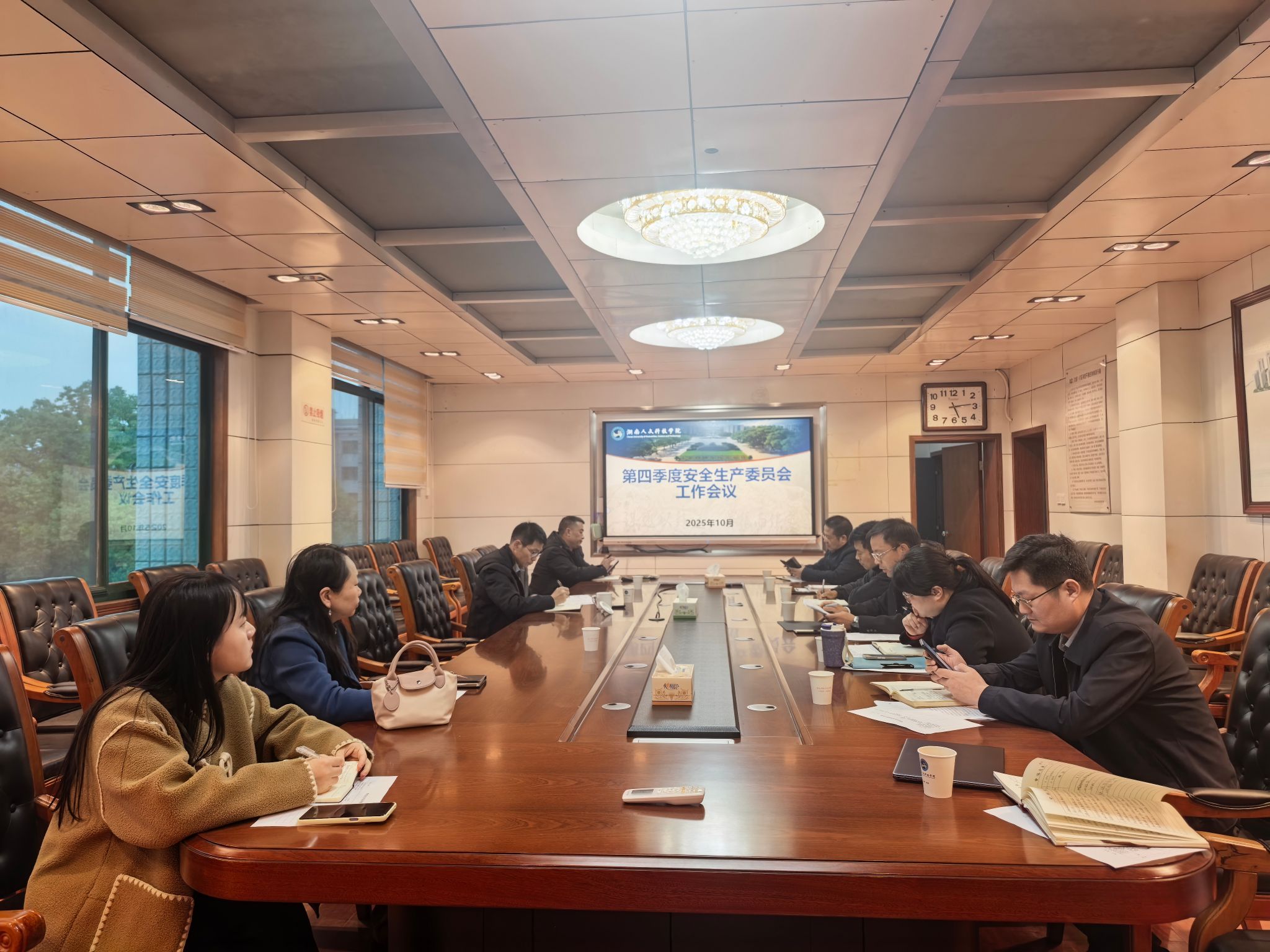 会上,学校安委会办公室、保卫部传达省、市近期关于校园安全工作的相关文件精神,就第四季度校园安全稳定的重点任务进行梳理,明确了当前安全工作重点。