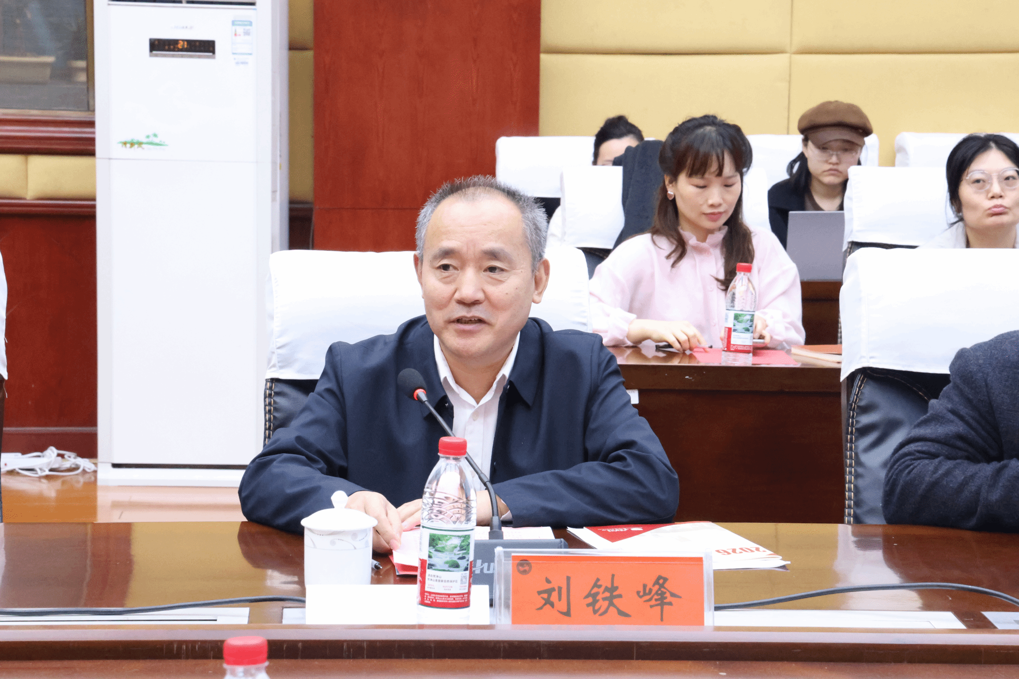 会上,刘铁峰对万千的到来表示热烈欢迎。他简要介绍了学校的发展历程与办学成果,重点指出本校学报期刊的特色栏目设置与学术传播成效,强调期刊始终以服务学术创新为核心,不断优化学术传播机制,推动更多高水平研究成果产出。