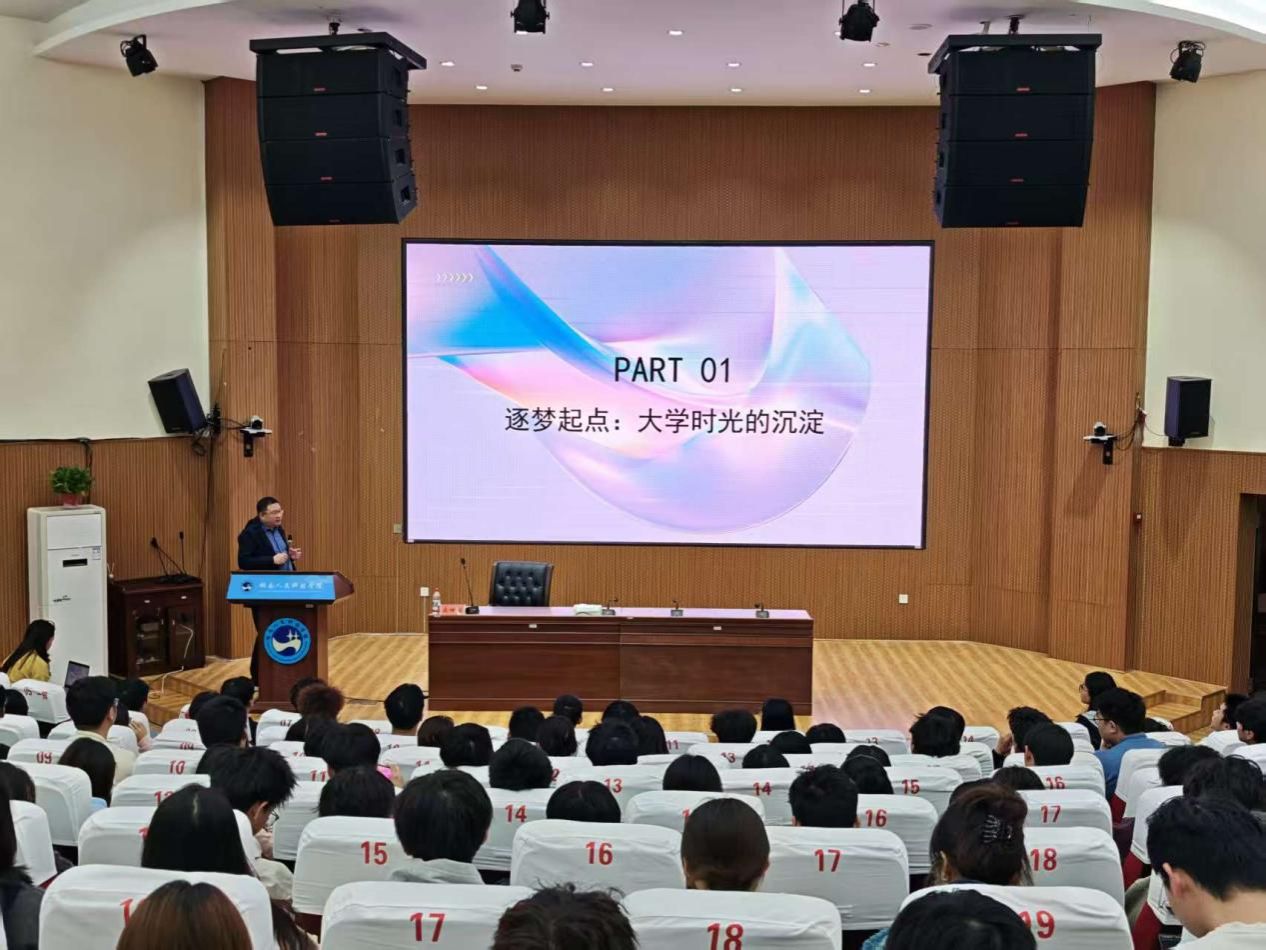 10月23日下午,娄底籍优秀企业家、苏州易米克电子有限公司董事长禹世源受邀重返校园,以自身创业经历为蓝本,为近300名学子带来了一堂生动而深刻的就业创业指导课。校党委委员、副校长谭峰亮出席活动。