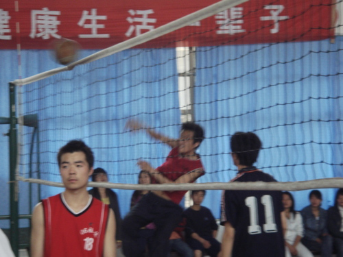 此次排球联赛共历时半月,有男女二十支球队参赛。经过激烈的角逐,05级05班获得了男子组第一名,05级女子联队获得了女子组第一名。
