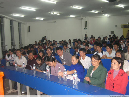 在学习、工作,或两方面都有取得成绩的顔博、周兴、李秋德、梁琦、聂黄朝、曾志清等九位同学讲解了他们学习,工作经验。然后就大一、大二学生的提问进行了回答。