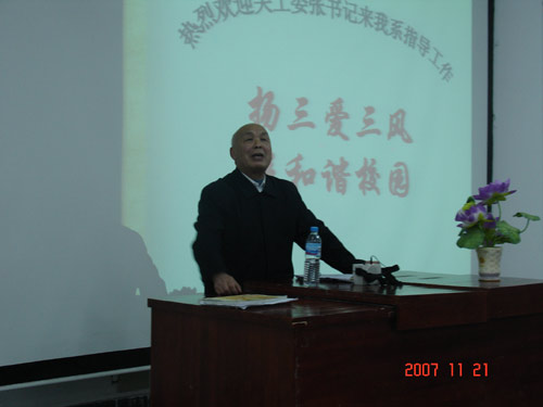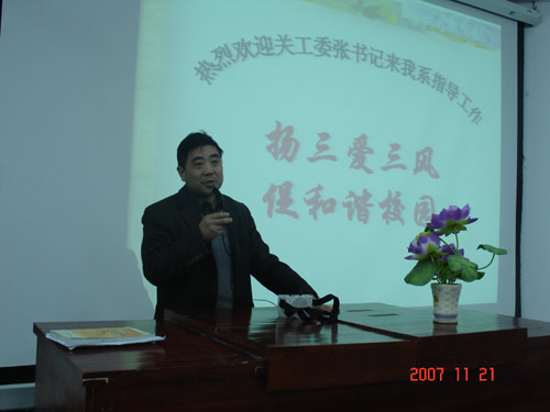 11月21日,院长助理刘铁铭教授、关工委主任张特世同志来数学系调研指导。