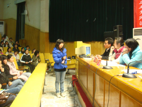 系主任周巧红在会上简单总结了外语系在前两届挑战杯赛上的获奖情况,并指出“参与是一种尝试,也是很好的实践”。胡瑾副主任就“挑战杯”选题方面对同学们进行了具体指导。院团委谢柳副书记指出参与“挑战杯”,必须迸发激情,创新思路,并提出了“人无我有,人有我优,人优我特”的十二字方针。