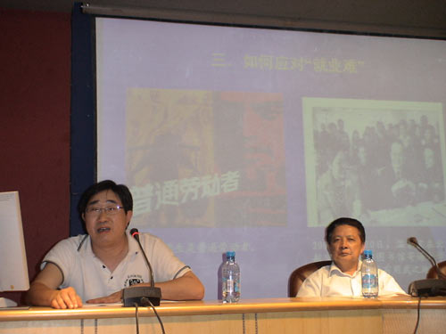 6月5日下午,多媒体报告厅座无虚席,湖南师范大学社会学系博士生导师陈成文教授应邀为今年会经管系师生做了一场精彩的题为《大学生就业的形势与对策》的学术报告,报告会由经管系党总支书记李本成教授主持。