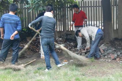 为了进一步加强对党员发展对象的培养和教育,牢记“全心全意为人民服务”的宗旨, 11月 27日 下午 ,职教部29名2010年党员发展对象开展了义务清扫美化校园环境活动。