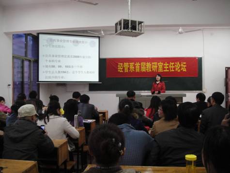 ,经管系在经管楼303教室举行了首届教研室主任论坛。副校长蒋建初、周发明及教务处、教学督导团相关负责人应邀出席了会议,经管系全体教师参加了会议,