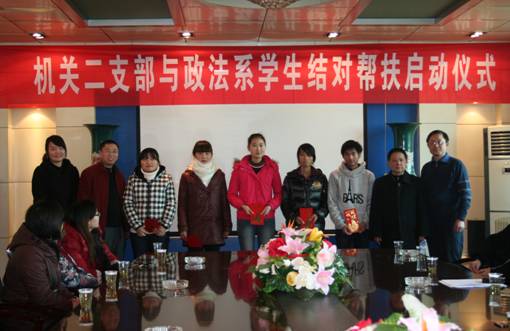 下午,机关二支部在明德楼第一会议室举行与学生结对帮扶活动启动仪式。来自政治与法律系的5名贫困大一学生从机关二支部书记罗求实手中接过每人1000元的资助金。机关二支部全体成员、政法系相关领导辅导员参加了启动仪式。
