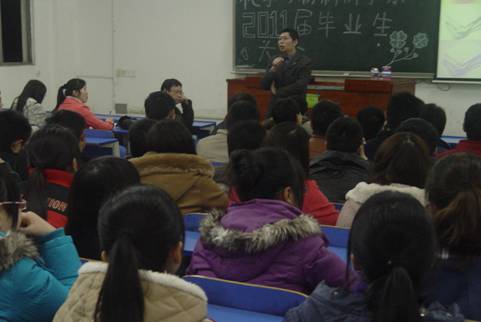 2 月24日 晚,化学与材料科学系在5栋309召开2011届全体毕业生大会暨湖南海利株洲精细化工有限公司供需见面会。图为湖南海利株洲精细化工有限公司人力资源部陈小兵部长详细介绍公司的基本情况。