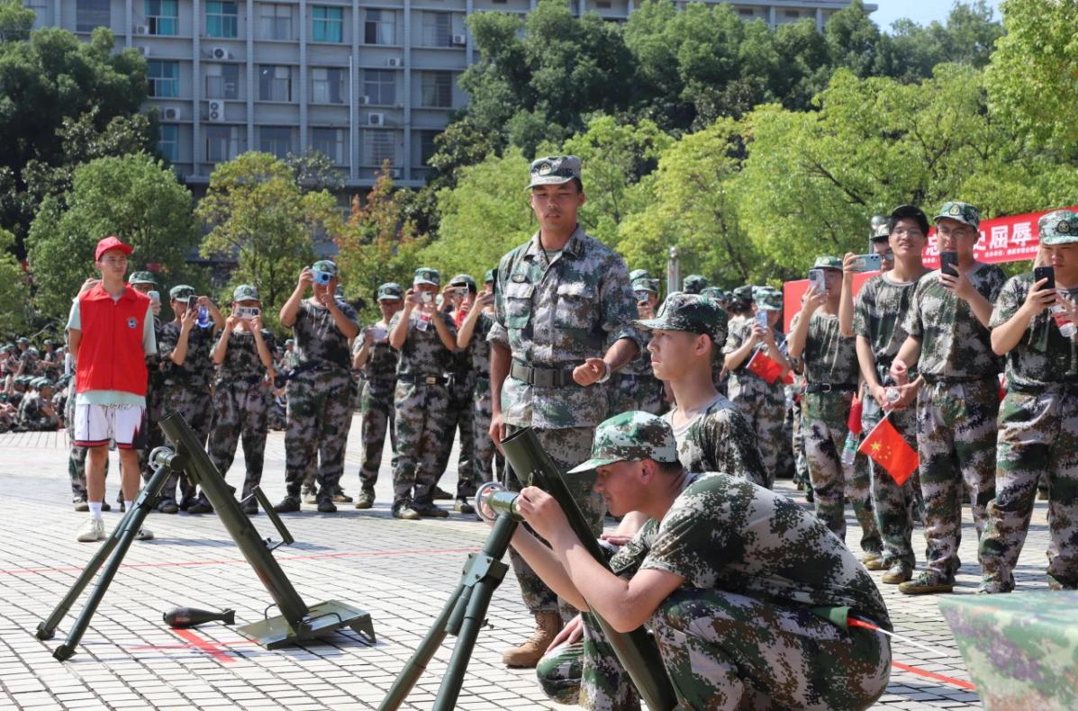 活动现场设置了兵器模型展观摩区、军事项目体验区、尖兵军事挑战赛体验区以及“九一八事变”展板、剪纸艺术(红色非遗)观看及体验区。同学们在教官的带领下有序进行观摩体验,近距离感受国防的魅力。