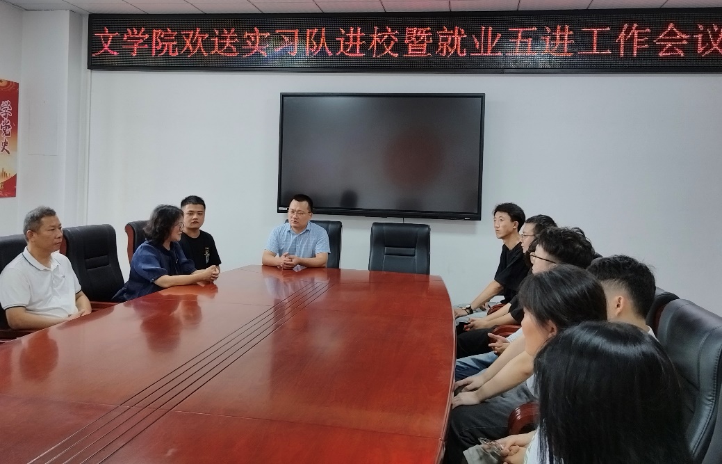在实习单位娄底市现代信息中等职业学校召开的座谈会上,毛永宁阐述了文学院就业“五进”工作,即进班级、进寝室、进实习就业基地、进用人单位、进就业困难家庭,开展就业服务工作。他希望大家清晰目标,努力奋斗,早日实现人生理想。会上,现代职院副校长朱长明及文学院扶英姿老师就实习工作相关事宜进行了布置,并鼓励我院学生充分利用这次实习机会提升能力,为就业打下良好基础。