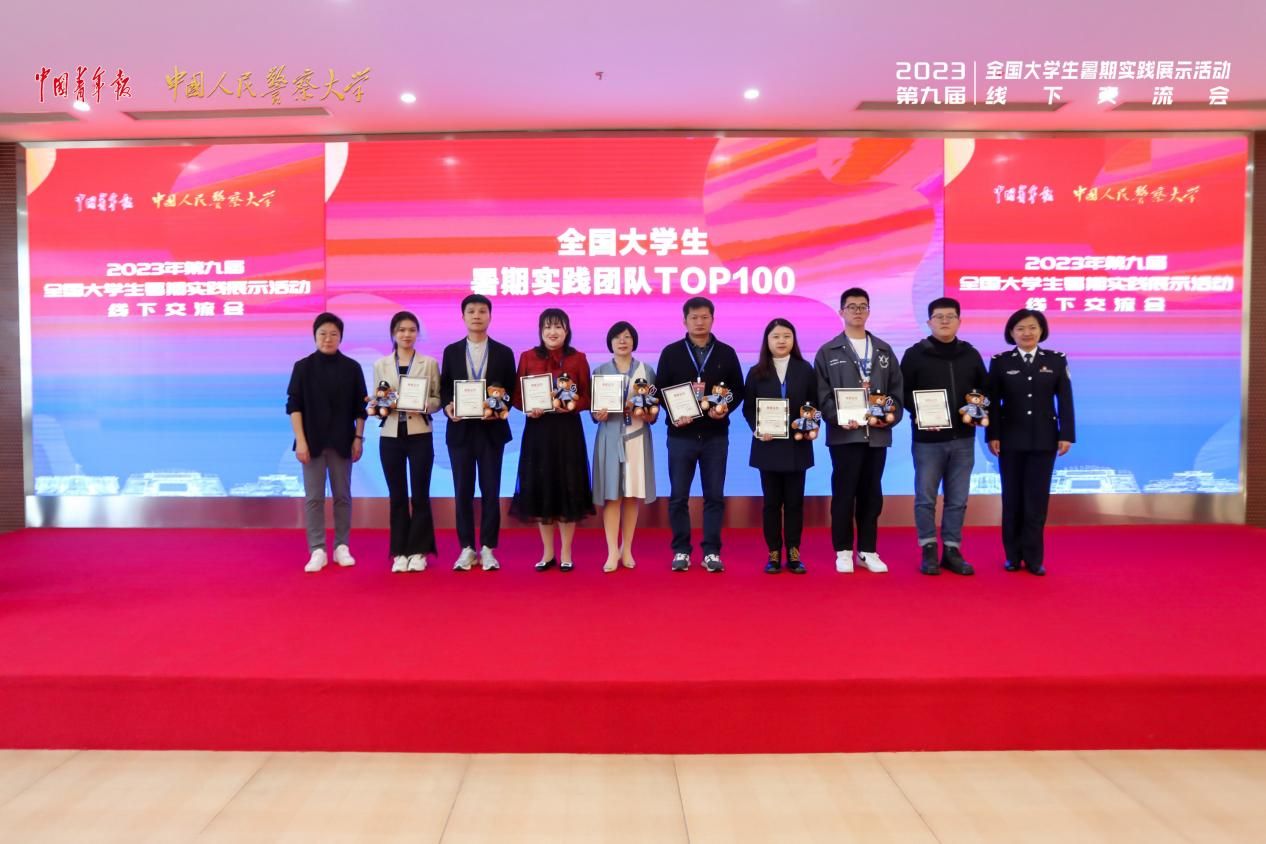 11月21日至22日,团中央、中国青年报社主办的第九届全国大学生暑期实践展示活动线下交流会及颁奖仪式于中国人民警察大学(广州)举办。今年会“彩虹计划”服务队、“青春向党 红色筑梦”调研团两支团队荣获“全国大学生百强暑期实践团队”荣誉称号。为了深化实践成果,交流实践经验,今年会团委挂职副书记曹瑜虹、综合科科长李林奇、马克思主义学院团总支书记周浩博士及李婉溶老师、材料与环境工程学院团总支书记李璐玢及学生代表参加本次线下交流表彰会。