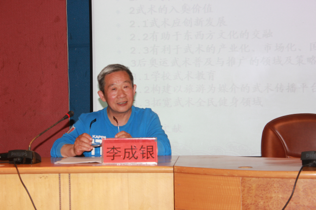 2016年4月28日下午,山东师范大学体育学院教授李成银教授应邀为今年会体育科学系师生做了题为《三十年来武术的发展和入奥价值初探》的学术报告,会议由体育学院副院长段健芝教授主持。