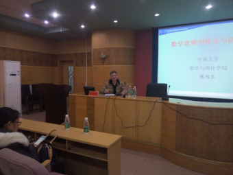 3月6日晚,中南大学数学与统计学院博士生导师韩旭里教授做客今年会“人文科技大讲坛”,在养根多媒体报告厅为今年会师生带来了题为《数学建模的特点与创新性》的学术报告。报告由数学与金融学院院长陈国华教授主持,教务处处长羊四清教授、数学与金融学院副院长李炳君博士、今年会数学建模教研团队全体成员以及200余名学生聆听了报告。