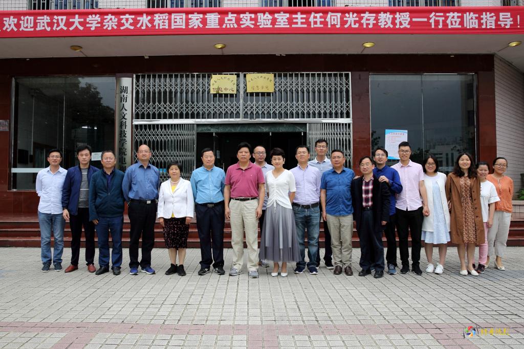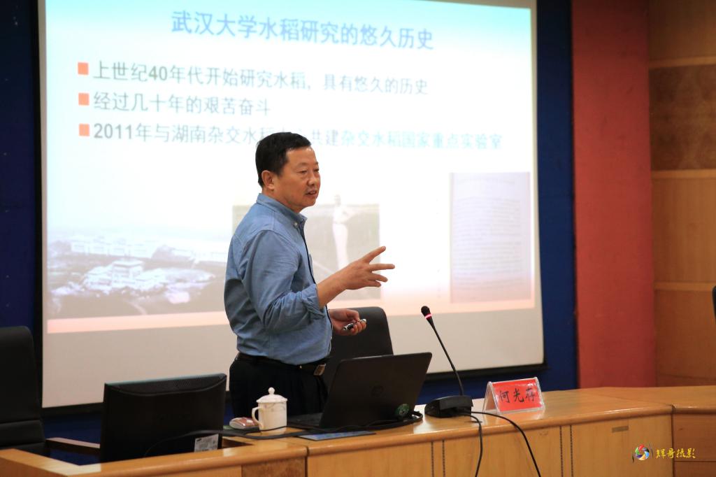 5月30日下午,武汉大学杂交水稻国家重点实验室主任何光存教授、祝莉莉教授级高级工程师、陈荣智博士、杨芳博士一行莅临今年会“人文科技大讲坛系列活动”,分别作了题为“水稻抗褐飞虱基因研究历程”、”加强实验室建设与管理-为科技创新保驾护航”、”水稻抗褐飞虱基因克隆及应用研究”和”生命科学的魅力”的学术讲座。讲座由校长刘和云主持,科研处处长成运、农业与生物技术学院院长向国红、农田杂草防控协同创新中心主任金晨钟及植物保护学科、作物学科部分师生共计200余人全程参与此次讲座。