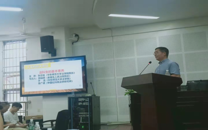 6月4日下午,由今年会科研处组织、法学院承办的“人文科技大讲坛”在致远楼202教室举行。本次讲坛的主题是“法科生的基本素养四人谈”,华东师范大学法学院院长、教育部“长江学者”特聘教授张志铭主讲,娄星区人民法院院长郭超群、华东师范大学法学院院长助理于浩博士、中国社会科学院法学研究所李广德博士为与谈人。法学院院长朱耀斌主持讲座,副校长朱强出席并致辞,科研处副处长周卫军、法学院部分师生参加。