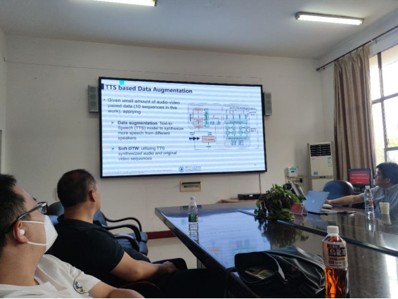讲座中,陈谐首先通过场景演示方式介绍了跨媒体语言智能实验室的在对话式人工智能、视听文感知及语言认知方面的主要研究情况,重点分享了在多语言同声传译和语音驱动的数字人方面做的一些探索和尝试。陈教授介绍了团队最新的流式语音识别和机器翻译前沿研究,并直接演示了多语言同声传译系统,通过团队搭建的语音识别系统直接识别同声传译原文,同时通过同传系统转换成越南语。在语音驱动的数字人方面,提出一种两阶段模型将输入音频信号同步到数字人的口型上,首先通过语音鲁棒特征提取形成一种音频特征映射到面部运动和姿势表示,其次通过动态时间规整DWT等对其技术将面部运动和姿势表示渲染到视频,从而基于少量的精标数据就可以搭建一个性能不错的语音驱动的数字人原型系统。陈教授的报告通俗易懂、深入浅出,将复杂的模型演变成清晰有趣的应用展现在师生的面前