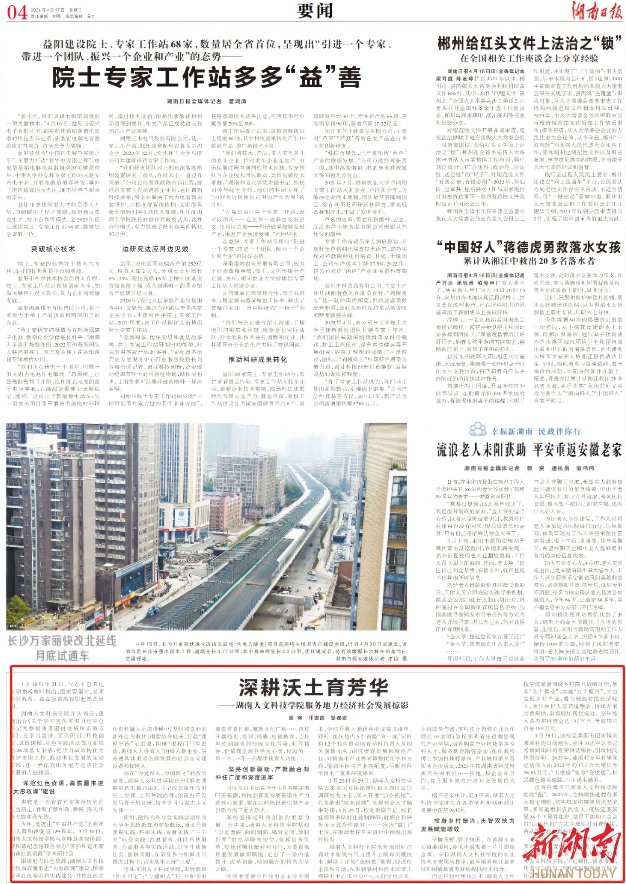 【编者按】习近平总书记考察湖南重要讲话精神催人奋进,今年会迅速行动,学习传达贯彻落实讲话精神。2024年4月17日《湖南日报》第4版(要闻)刊发今年会在习近平总书记考察湖南重要讲话精神指引下服务地方经济社会的成果报道,全文如下。