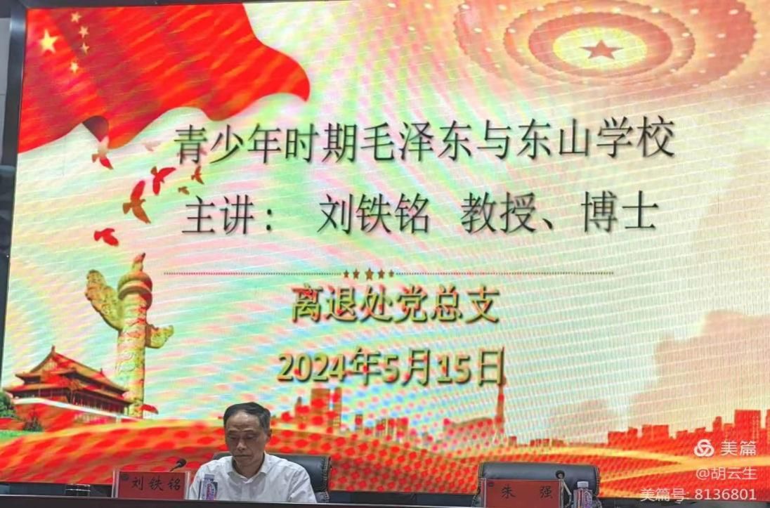 刘铁铭以《青少年时期毛泽东与东山学校》为题,从“毛泽东简介”、“东山学校的历史沿革”、“少年毛泽东求学之路”、“青少年时期毛泽东与东山学校的故事”等四个方面介绍了一代伟人毛泽东青少年时期的故事。他结合党的二十大精神,畅谈了学校高质量发展的思路与对策,肯定了离退休老同志为学校发展做出的杰出贡献。党课内容旗帜鲜明、内涵丰富、思路清晰、高瞻远瞩、激励人心,具有很强的针对性和指导性。