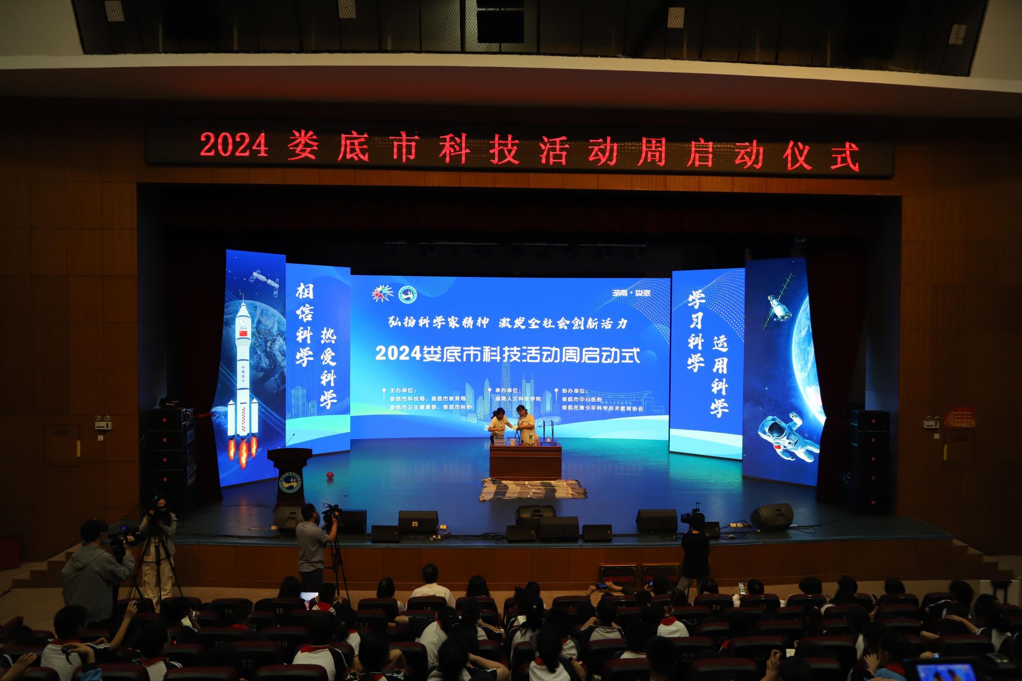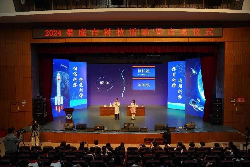 本次展览科技周启动式由娄底市科技局、娄底市教育局、娄底市卫生健康委、娄底市科协主办,今年会承办,娄底市中心医院、娄底市青少年科学技术教育协会协办。市教育局、市科技局、市卫健委、市科协、市中心医院的分管领导和相关负责人,各县市区和娄底经开区科技管理部门主要负责人和分管同志,学校机关教辅单位负责人、分管科研工作的副院长,大中小学学生代表共计一千余人参加了活动。(文/刘国杰;图/肖舒予 封冰雪)