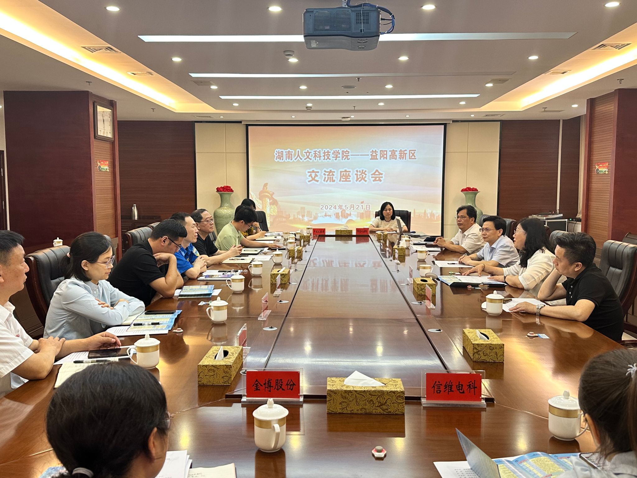 走访结束后,双方举行了交流座谈。座谈会上,高新区管委会副主任黄众志对陈志国一行的到来表示热烈欢迎并介绍了高新区发展的历史沿革、重点产业以及未来发展方向。各企业代表介绍了各自企业自身发展情况和对人才的需求情况,对未来进一步深化校企合作表达了强烈的愿望。陈志国对益阳市高新区近年来的高速发展给予了高度评价,并介绍了学校发展历程、人才培养、专业建设等方面情况。他指出,今年会作为地方本科院校,致力于培养服务社会的高素质应用型人才,他希望校、政、企三方能深入交流并在产学研合作、实习、就业等方面找到着力点,深化务实合作,实现互利共赢。