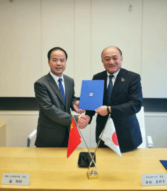 (盛明科和仓林真砂斗校长正式签署两校人才培养合作协议)
