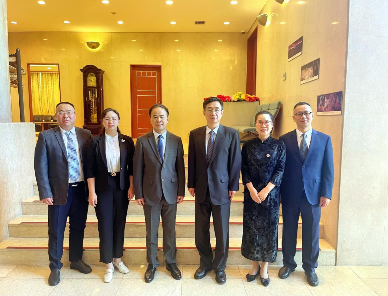 在中国驻日本大使馆教育处,杜柯伟公参对今年会的到访表示欢迎,向到访团组成员介绍了日本高等教育的基本情况。盛明科向教育处介绍了学校的办学和国际合作交流的基本情况,并希望今后大使馆教育处在今年会与日方高校合作方面给予更多的指导与支持。双方还就与日方高校开展高层次国际化人才培养创新实践项目、推进高质量国际人文交流合作、中外高水平大学生交流计划进行了深入的探讨与交流。