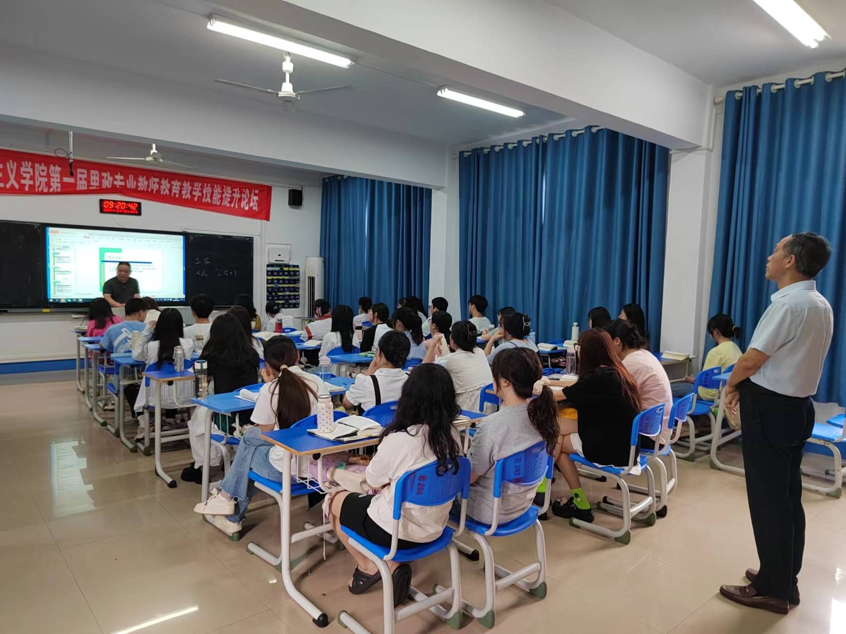 随后,刘铁铭来到若谷楼和致远楼检查了教师授课、学生听课等情况,从检查情况来看,教学秩序明显改善、教学效果有明显提升;但是仍然有少数教师教学准备不够充分,课堂管理欠佳,存在学生玩手机、上课打瞌睡等情况。