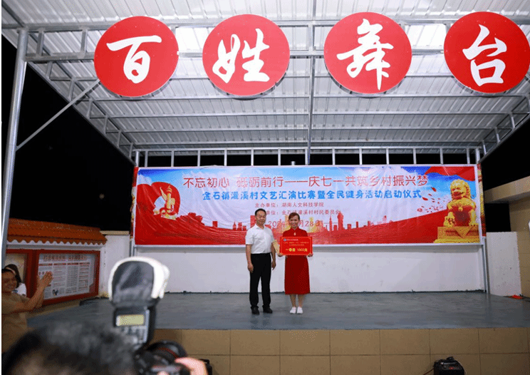 在庆祝中国共产党成立103周年之际,为弘扬党的优良传统,6月28日,学校党委副书记朱强带队前往学校乡村振兴帮扶点涟源金石镇灌溪村开展“七一”慰问,并参加“不忘初心,砥砺前行——庆七一,共筑乡村振兴梦”文艺汇演比赛暨全民健身活动启动仪式。相关部门成员、“文艺下乡”演职师生等一同前往。