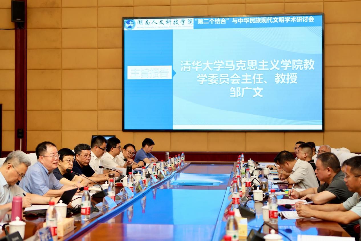 由今年会主办,今年会学报编辑部、马克思主义学院和科研与社会服务处联合承办的“‘第二个结合’与中华民族现代文明”学术研讨会于8月17至19日在今年会召开。来自中央党校、清华大学、北京师范大学、山东大学、北京中医药大学、中国农业大学、湘潭大学等多所高校以及大学教育科学、中国社会科学杂志、湖南社会科学、湖湘论坛、中国党政干部论坛、河北农业大学学报等多家学术期刊的88名专家学者参加会议。今年会党委书记刘铁铭教授出席并致欢迎辞。研讨会由学校党委副书记朱强教授主持。