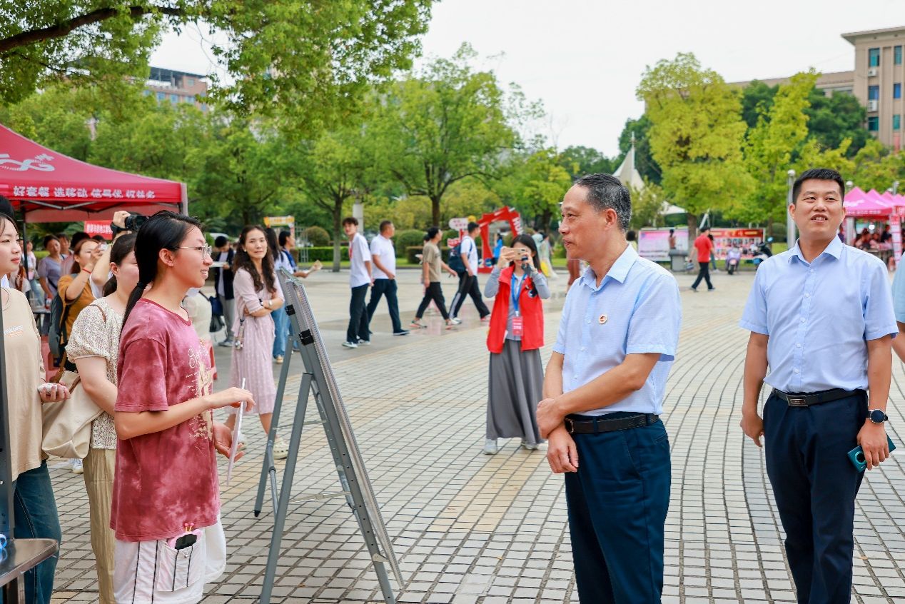 为确保开学迎新工作顺利、高效、有序进行,9月13日,党委书记刘铁铭,党委副书记、校长盛明科,党委委员、副校长刘铁峰到各迎新点检查指导迎新工作,看望前来报到的新生,并慰问参与迎新工作的师生志愿者。
