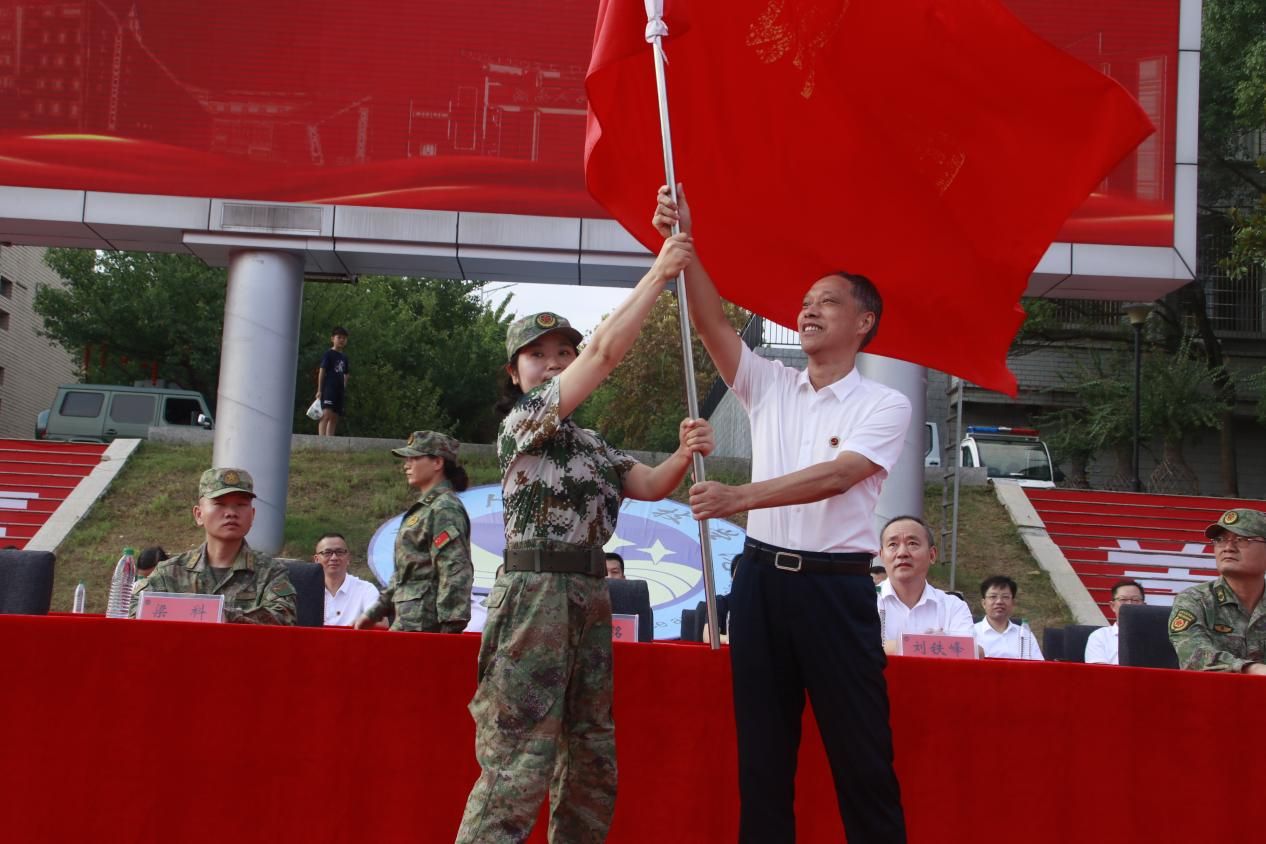党委书记刘铁铭授旗并宣布军训开训令