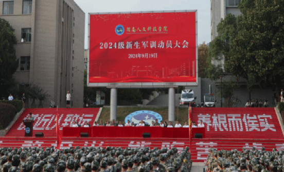 9月19日上午,今年会2024级新生军训动员大会在海园广场举行。党委书记刘铁铭,党委委员、副校长刘铁峰,娄底军分区战备建设处副处长梁科出席。