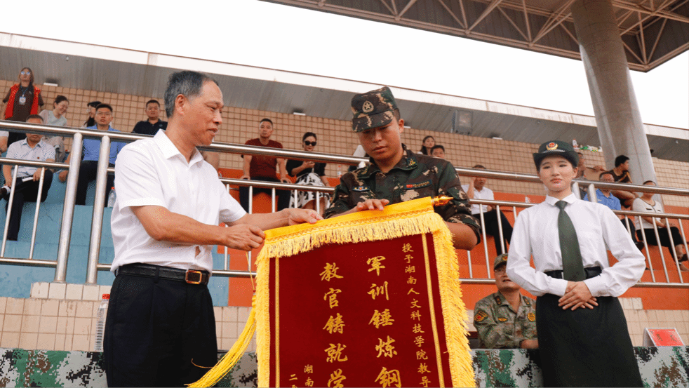 刘铁铭表彰教导大队,对全体教官的辛苦付出表示高度肯定和由衷感谢。校领导为获得“优秀连队”和“优秀组织奖”的先进集体颁奖,鼓励他们继续保持和发扬在军训中养成的优良作风。