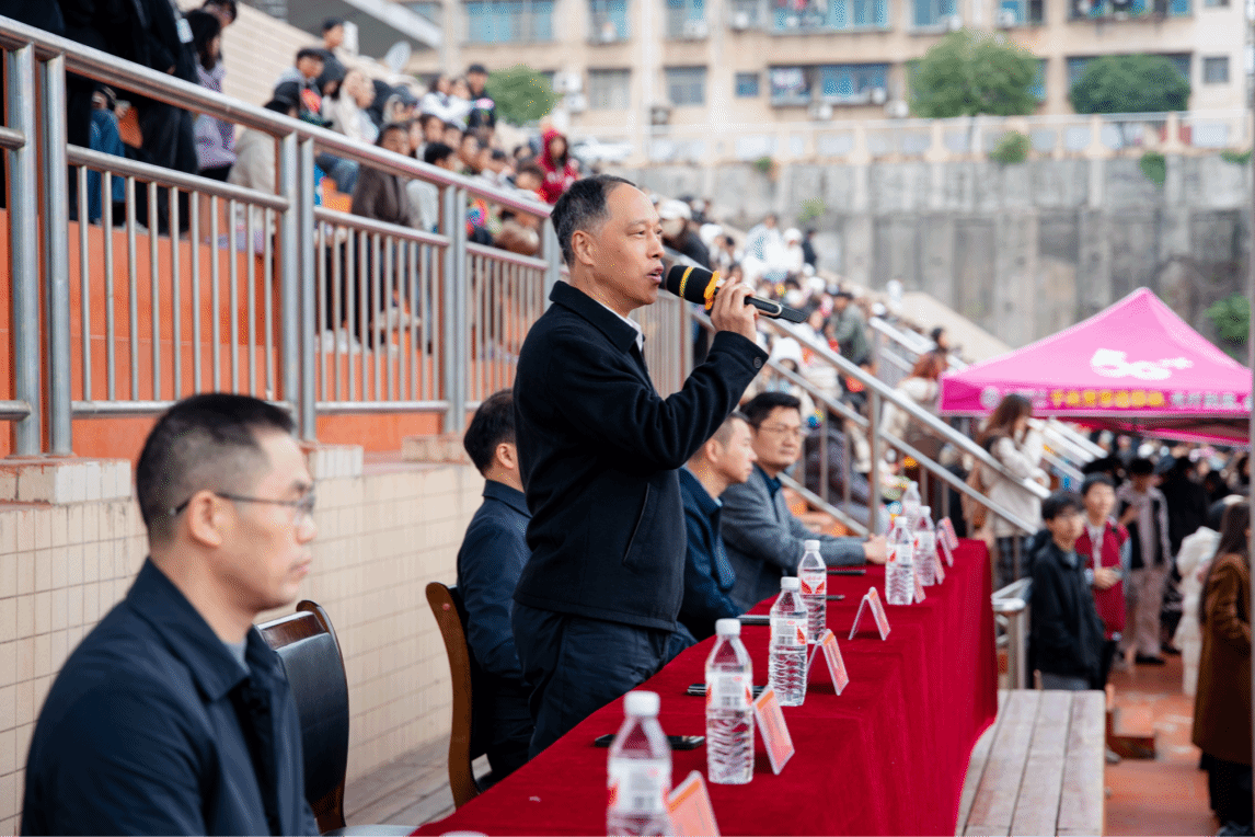 曾黎致闭幕辞。他向取得优异成绩的团体和个人致以热烈地祝贺,对辛勤付出的全体人员表示诚挚感谢。他表示,本次运动会不仅充分展现了人文学子的青春与活力,拼搏进取的良好风貌,还发扬了运动员们“顽强拼搏,永不言弃”的体育精神。希望大家在今后的学习与工作中不断追求卓越,努力将体育精神转化为实践能力和品格的提升。
