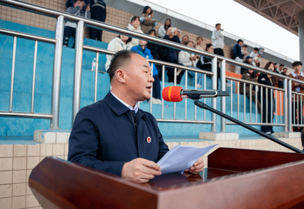 盛明科致开幕辞。 他代表学校预祝本届运动会圆满成功,并向筹备本届运动会的师生团队表示感谢。他指出要落实习近平总书记关于建设体育强国的要求,要注重学生的体质健康,加强体育文化素质教育。他希望本届运动会全体参赛人员用行动诠释“更快、更高、更强、更团结”的奥林匹克精神,希望人文学子们能将体育精神融入日常学习与生活,提升自我,共同为学校高质量发展助力。