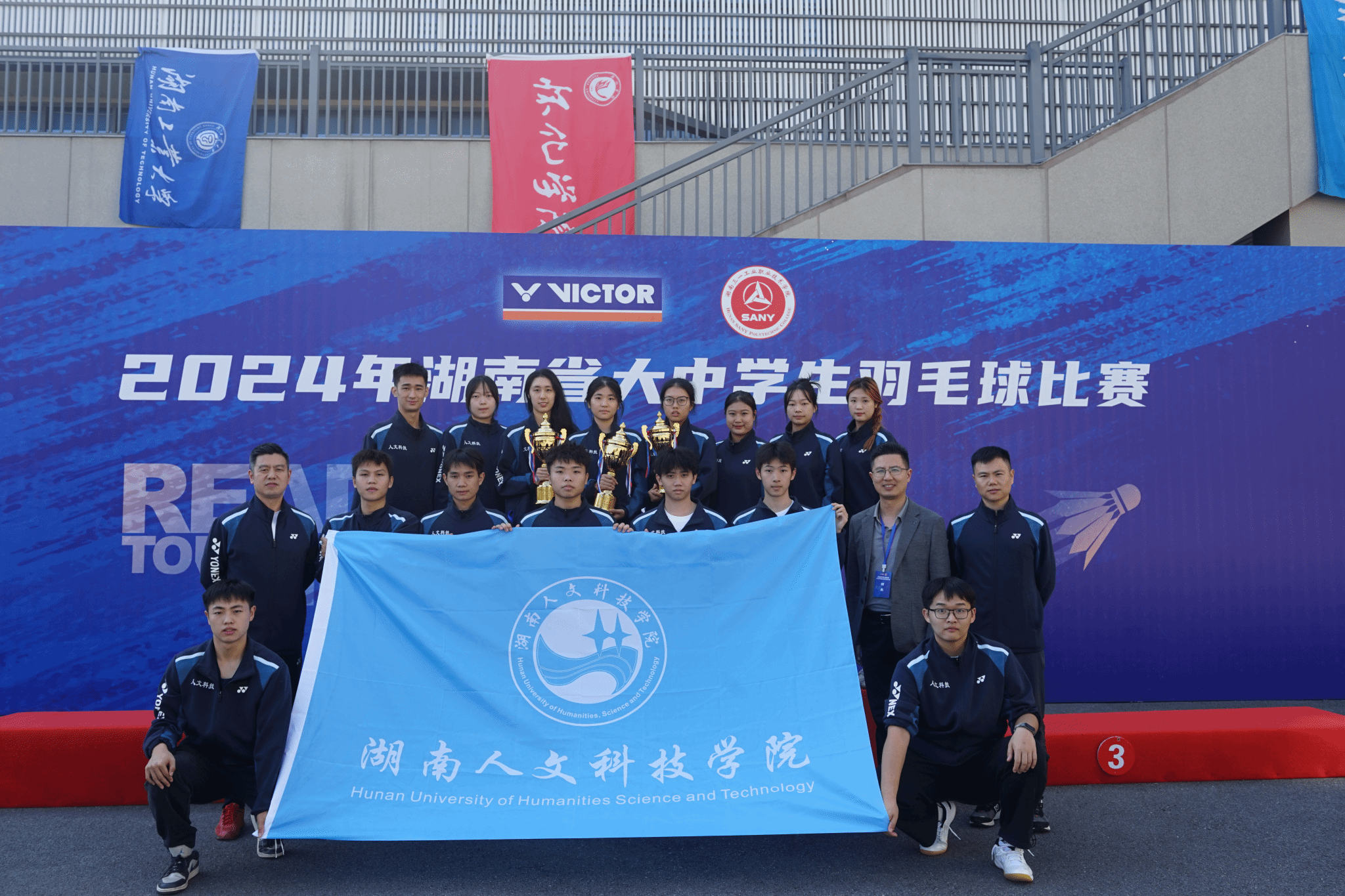 11月1日至11日,湖南省大学生羽毛球赛在湖南三一职业技术学院举行,吸引了全省38所高校的羽毛球队同台竞技。今年会羽毛球队一举夺得3枚金牌(乙组女双、甲组男双、甲组混双)、2枚银牌(乙组女团、乙组男双)及4枚铜牌(乙组男团、乙组混双、乙组女双、乙组女单),创下历史最佳成绩。
