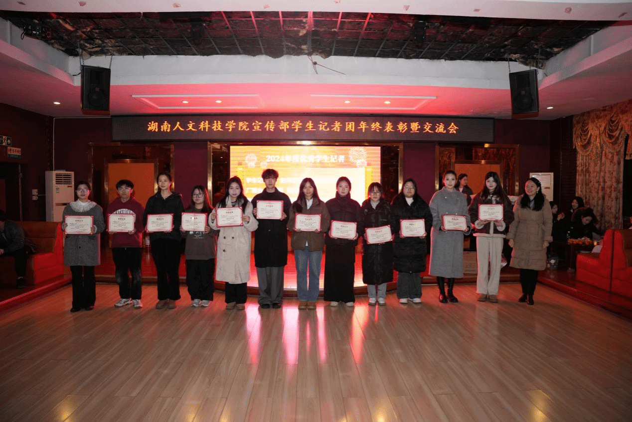 12月14日晚,党委宣传部在教职工之家举行了学生记者团2024年度表彰暨交流会,校党委副书记朱强教授出席并讲话,宣传部常务副部长谢柳、副部长田密、全体老师和学生记者团成员参加,活动由广播台罗振宇和邱菁怡主持。