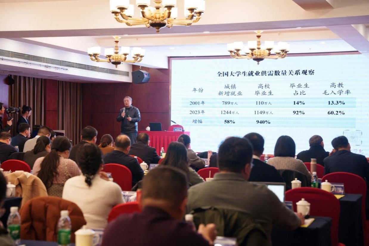 教育部高校学生司(高校毕业生就业服务司)就业指导服务处处长詹清华作第一场专题授课。她深入阐述了教育强国背景下高校毕业生就业工作的新要求,明确了新形势下高校毕业生就业工作的新定位、新使命,为大家提供了启发性的思考和实践方向。
