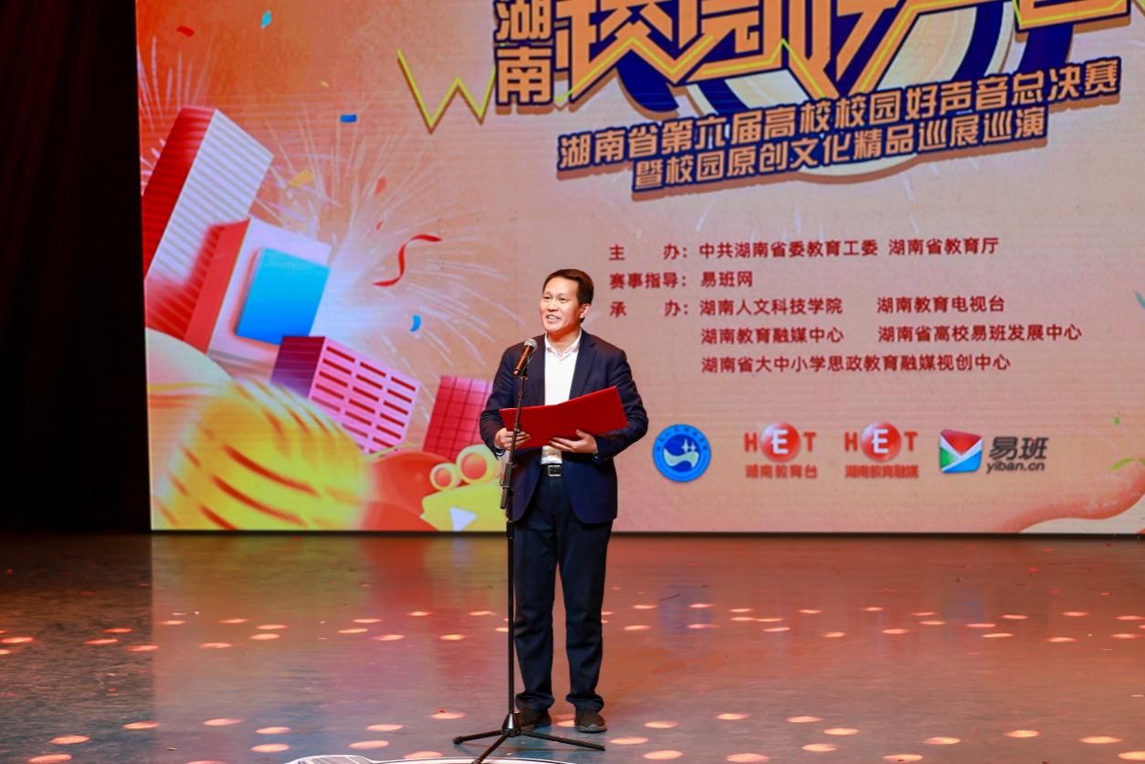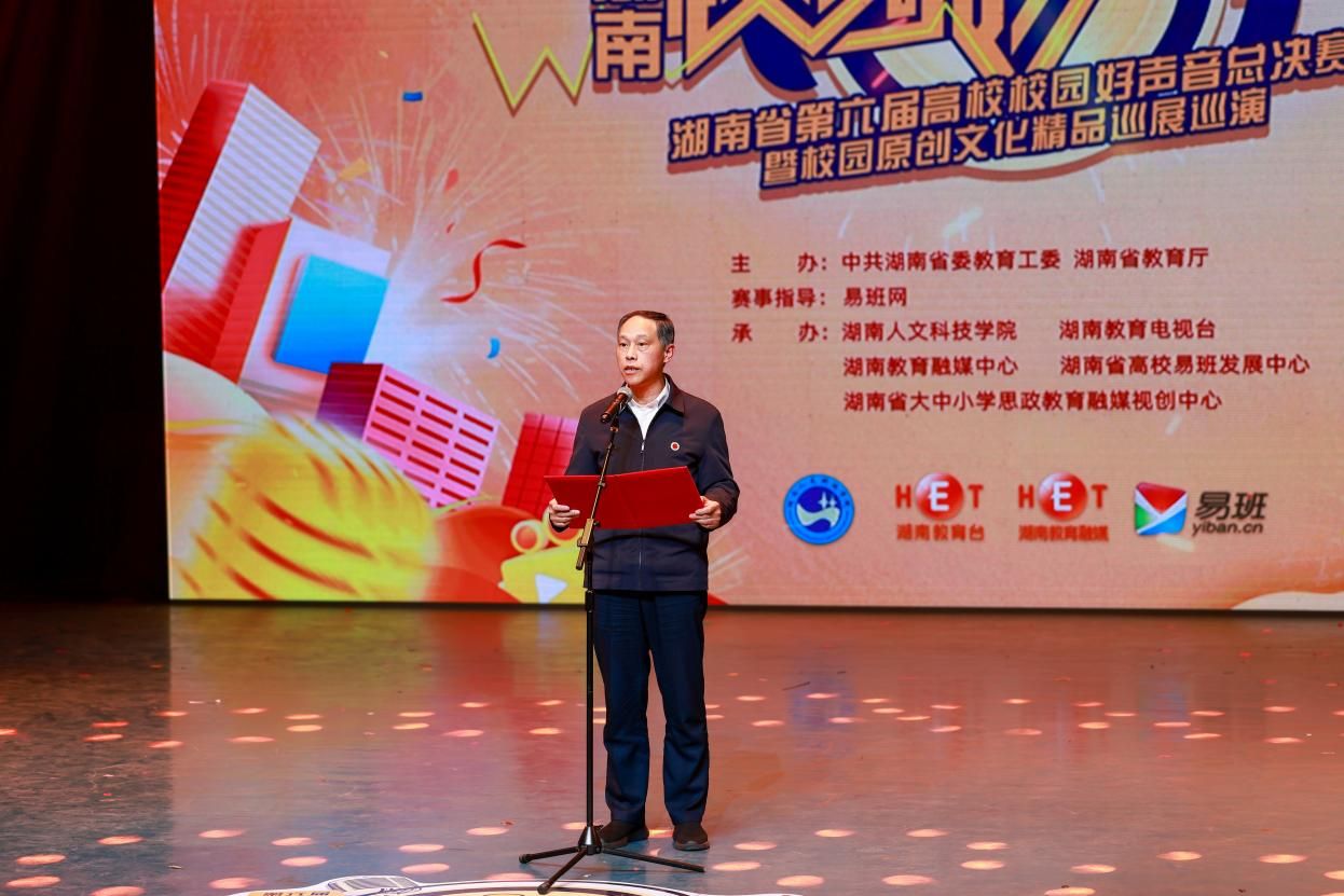 余伟良在颁奖典礼上讲话。他指出,湖南省校园好声音大赛始终秉持着思政加音乐的独特育人模式,凭借充满青春气息、洋溢着阳光味道且饱含正能量的好歌,有效地激发了广大学子的昂扬斗志,已成为我省高校文化育人领域中一块响当当的重要品牌。他希望各学校持之以恒地践行以文化人理念,积极挖掘湖湘原创力量,用心传唱经典、润泽心灵,通过歌声唱响契合时代脉搏的最强音,让校园处处充满着浓厚的文化气息与青春活力。