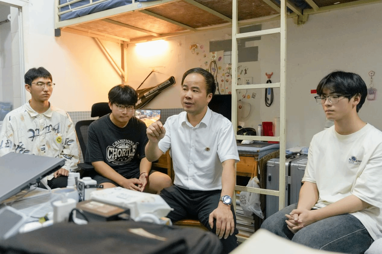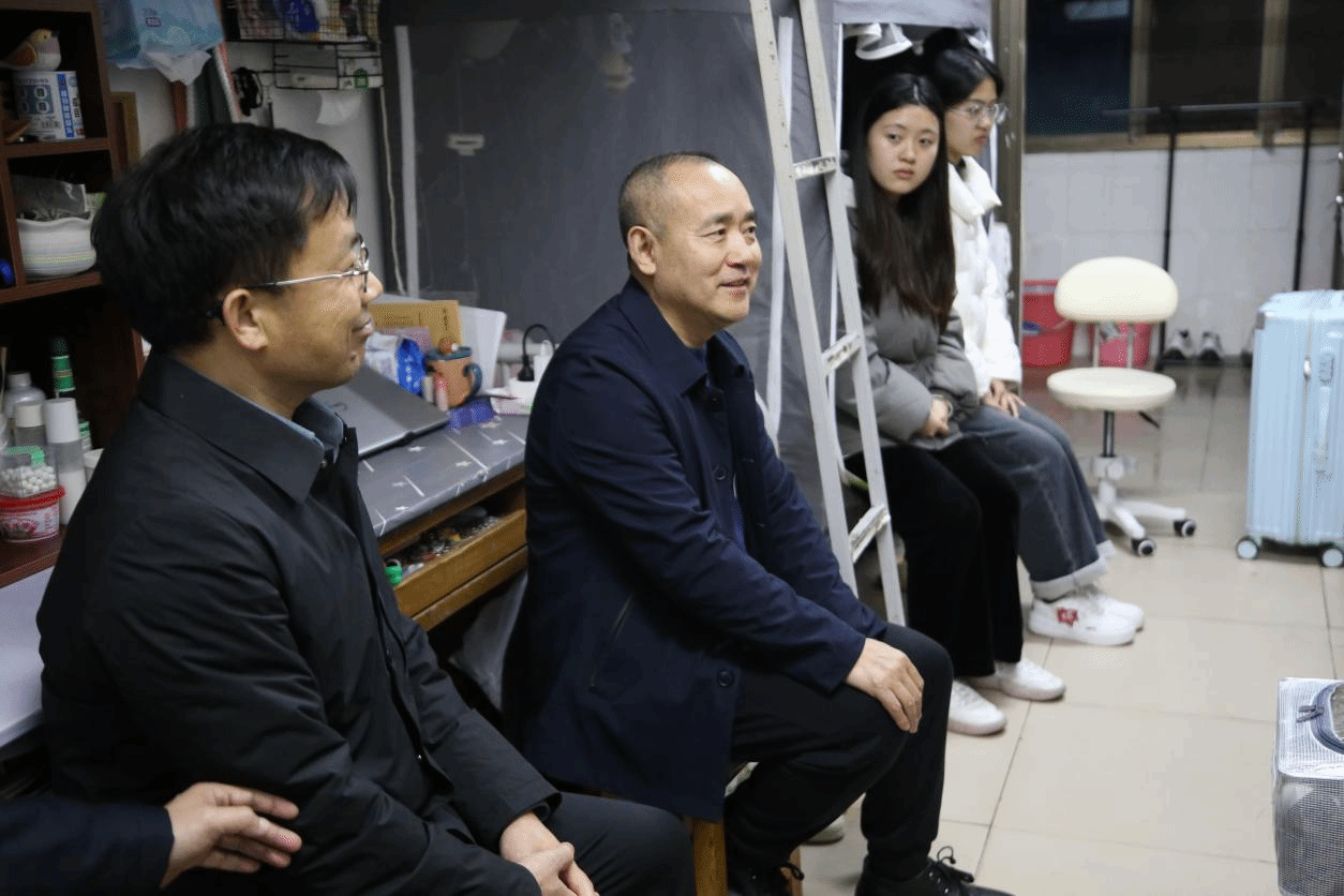 3月26日晚,校领导及中层干部深入学生寝室开展专题“三联系”活动,宣讲2025年全国两会精神,倾听和了解学生急难愁盼问题,推动思政教育融入育人全过程。