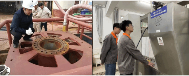 指导老师团队和学生团队分别在海底采矿现场和水射流实验室开展试验