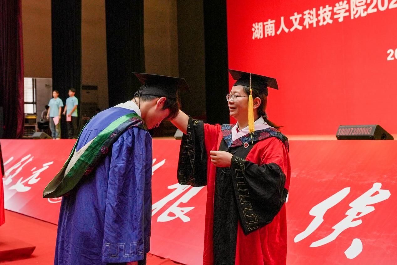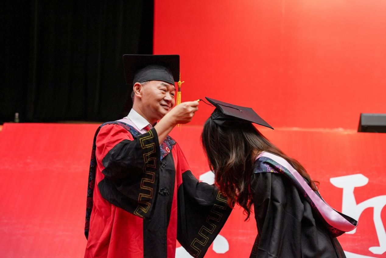 党委副书记、校长盛明科为毕业生正冠、拨苏