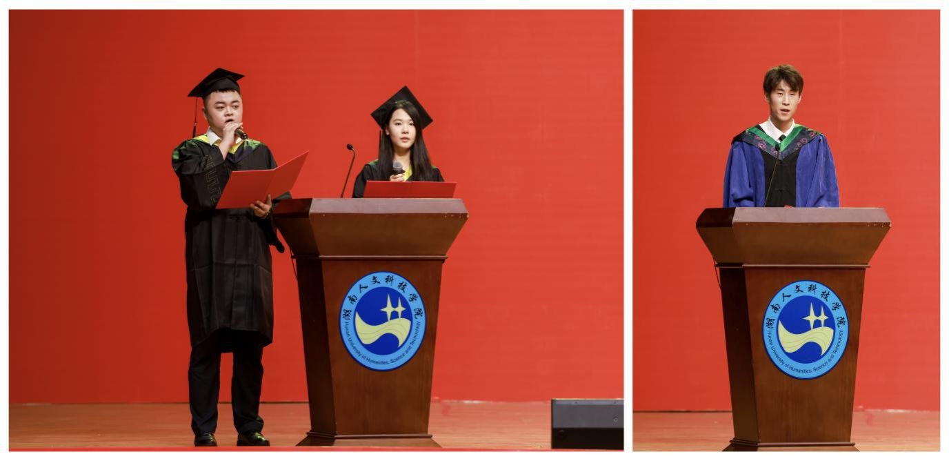本科毕业生代表能源与机电工程学院谭雅文、信息学院张天逸发言。他们分享了四年求学生涯的收获与成长,感恩母校以人文与科技交融的精神,为他们奠定了家国担当的底气。硕士毕业生代表刘源发言。他表示将以“追光者”的姿态,在属于自己的领域书写新时代青年的奋斗答卷。