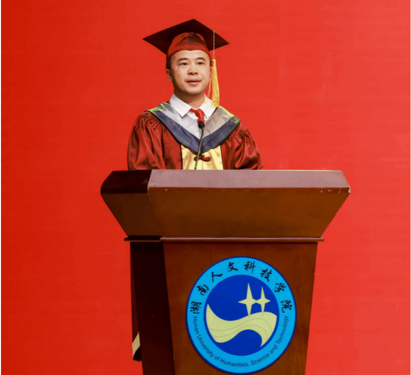 党委副书记、校长、学位评定委员会主席盛明科以《以人文之光赴时代之约》为题讲话。他表示,毕业从来不只是人生的新起点,更是时代使命的接力点。同学们骄人的成绩、感人的故事、拼搏的身影都将成为奋斗青春的记忆、勇毅前行的底气。他肯定考研学子“追光者”的坚定脚步、实践团队“解码者”的锐意进取、创新创业先锋“开创者”的无畏勇气、志愿奉献“守护者”的大爱光芒。他以优秀校友卿凤翎及李军的优秀事迹激励大家把“个人梦想融入国家战略”,把“小我嵌入时代需求”。他向毕业生致以最热烈的祝贺并送给毕业生三个人生锦囊:一是坚韧,要用一步一个脚印的坚实,每分每秒的不懈奋斗,把“人文”与“科技”融合的构想逐渐变为现实;二是向善,要永远保持同理心,在生活中关爱弱者,在利益面前守住底线,成为一个有温度、有深度的人;三是创新,要主动拥抱新知识、新方法、新技术,让“敢于创新,追求卓越”的态度,成为攀登高峰的阶梯。
