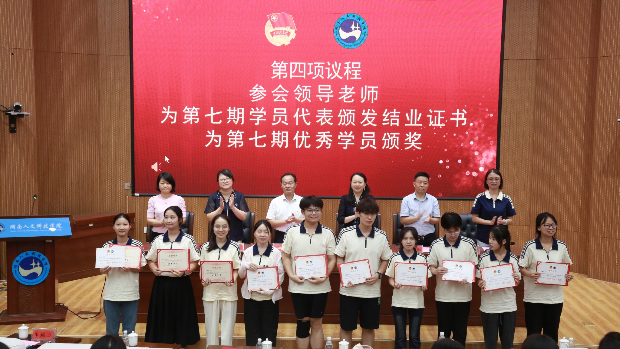 结业式上,马克思主义学院党总支副书记阳青全面总结第七期青马班培训组织开展情况。她回顾了学员们各培训环节表现,肯定了学员们课程学习、思想淬炼、实践锻炼等成绩。宣传部常务副部长谢柳宣布了第七期青年马克思主义者培养工程“优秀学员”名单。与会领导为学员代表颁发结业证书,并向优秀学员授予荣誉证书。