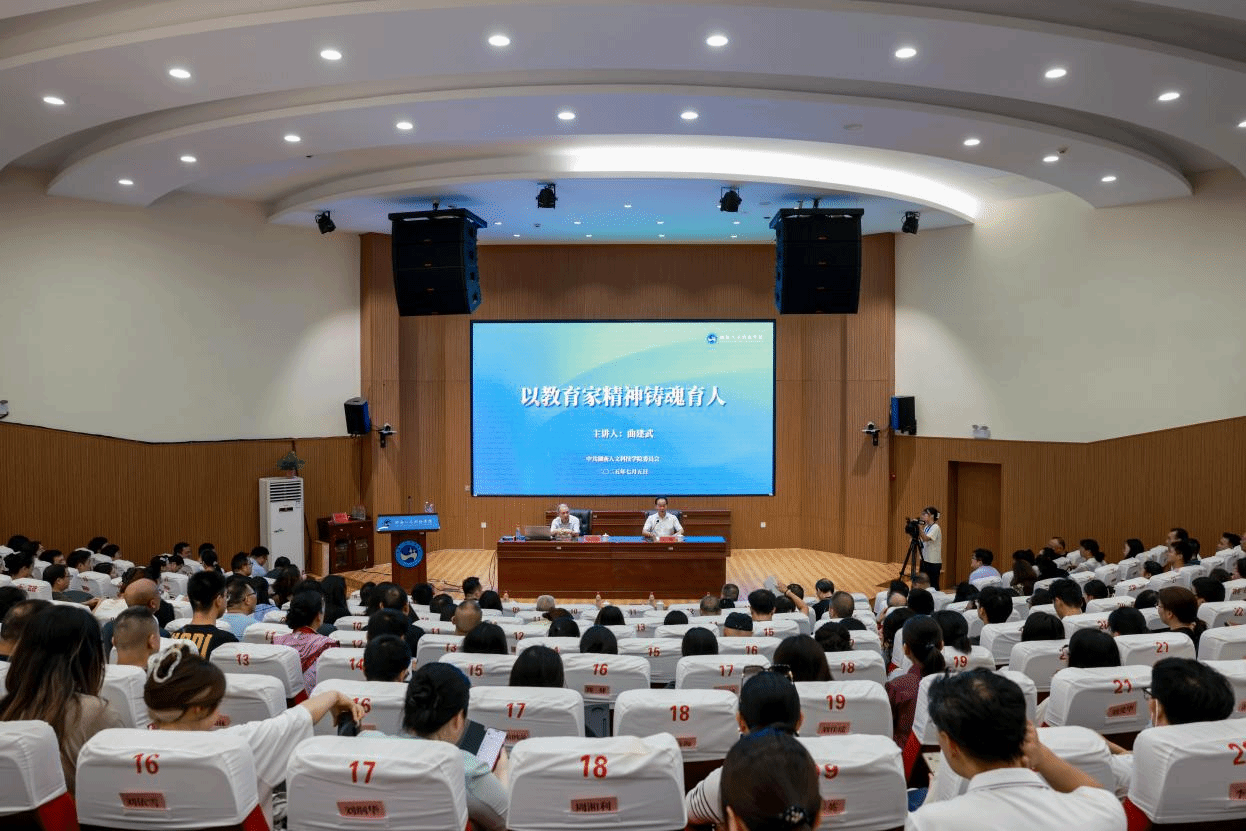 曲建武教授紧扣“以教育家精神铸魂育人”主题,结合自身四十余年的教育工作经历与感悟,从“具有心有大我、至诚报国的理想信念”“怀有言为士先、行为世范的道德情操”“丰富启智润心、因材施教的育人智慧”“保持勤学笃行、求是创新的躬耕态度”“怀有乐教爱生、甘于奉献的仁爱之心”“秉承胸怀天下、以文化人的弘道追求”六个方面系统阐释教育家精神的内涵与时代价值。曲教授展示了一张张饱含温情的照片、一封封情深意切的回信、一个个朴实深刻的育人案例,用实际行动阐释了他作为一名“仍然在路上”的高校思想政治教育工作者的楷模风范,充分展现他四十余年如一日对教育事业的热爱、对青年学生的关爱、对辅导员工作的执着坚守。他勉励在场的教育工作者尤其是一线的辅导员们,要坚定政治信仰,忠诚于党的教育事业,弘扬教育家精神,把思想政治教育工作当作一生为之奋斗的崇高事业。
