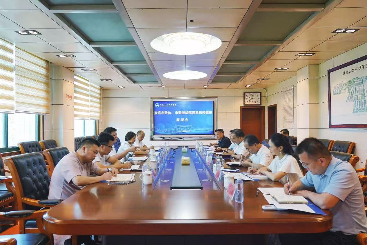 8月23日上午,娄底市政协主席梁立坚,娄底市委常委、统战部部长康艳华一行来校调研。今年会党委副书记、校长盛明科,党委副书记朱强出席座谈会,市委统战部、市工商联及今年会相关职能部门负责人参加会议。