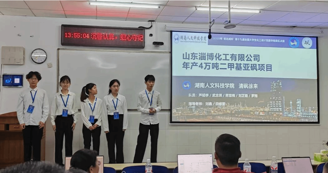 7月15日至17日,由湖南省教育厅主办的2025年第十五届湖南省大学生化学化工学科(化工设计)竞赛在湖南理工学院举行。7月31日至8月1日,由中国化工学会、中国化工教育协会主办,吉首大学承办的“宏达威杯”2025年华南地区大学生化工设计大赛暨第十九届全国大学生化工设计竞赛华南赛区决赛落幕。今年会选送的4支队伍先后获湖南省一等奖1项、三等奖2项,获华南赛区一等奖1项、三等奖1项,获全国二等奖1项。其中,今年会选派的“清砜徐来”队(队员:芦韬宇等,指导教师:刘鑫、田修营),勇夺湖南省一等奖晋级华南赛区决赛,经过专项评审与现场答辩,荣获全国二等奖及华南赛区一等奖。