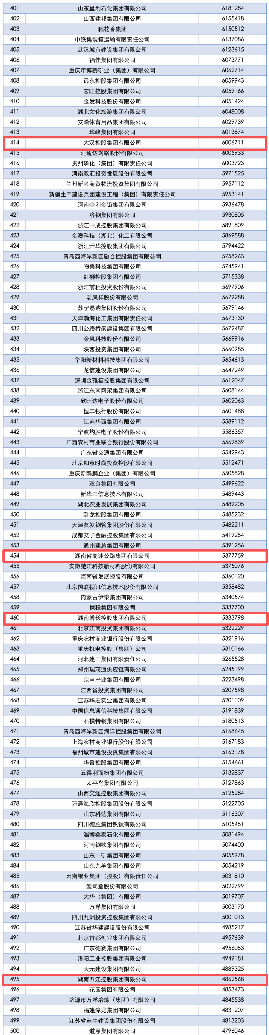 湖南五江控股集团作为本届新上榜企业,以486.26亿元的营业收入成功跻身榜单,位列第495位。该集团创立于1979年,已逐步成长为涵盖新材料、新能源、矿产资源、商贸、轻化、建材、农业和文旅等多元领域的现代化大型民营企业集团。集团在新疆创业投资二十年来,已经成长为大型新材料高科技民营企业,是目前国内装备水平一流、综合竞争实力领先的钛材生产企业,全国首家钛全产业链企业。钛材产量单体产能位居全球第三,中国第二。截至2024年底,集团总资产超700亿元,拥有30余家子公司,26000余名员工,年营业收入稳步增长。此前已先后斩获“中国制造业企业500强”“中国民营企业500强”“中国制造业民营企业500强”等荣誉。